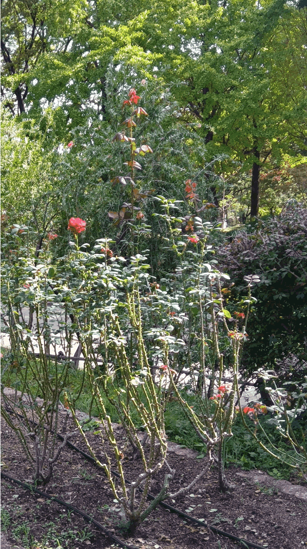 バラは日本だけでも2万種、世界的には3万種もあると言われています。西洋のバラ、中国のバラ、日本のバラが混ざっています。大雑把に分けるとすればワールドローズ、オールドローズ、モダンローズといったところです。 交雑種はかなり多く存在します。バラは草花と思われがちですがパラ科の落葉樹です。若い枝ではシュートと呼び勢いよく登る力強い枝をベイサルシュート。枝の途中から出てくる枝をサードシュートといいます花の大きさは枝の太さと葉の大きさに比例すると言われます。大輪の花を付けるハイブリッドティーは枝が太く剛直で単独で独特の存在感を持ちます 老化した枝では花の付は悪くなります。また老化した枝をそのまま放置すると枝が込み合ってしまい美しい花を咲かせません。そのため剪定は必須な管理作業です。バラは上のほうが太陽の光をたっぷり浴びて光合成することで健康に育ちます。美しい花を咲かせるためにはが太陽の光が不可欠です病気になっても光合成ができるので病気の枝は削除しておいた方がよいでしょう。同時に薬剤を散布し病原菌を退治しておきます。バラの一年は春から秋の生育期と冬の休眠期と二つの時期に分かれます早春に休眠から目覚め根が一年中の水分や養分を吸い上げます。そして本格的に春が訪れ気温が上昇し芽がふくらんで花が咲きます。その後はは盛んに光合成を行ない枝もぐんぐん伸び枝先に蕾がつきます。つぼみがつくのにエネルギーを使うため成長は一変一旦止まります。そして5月頃に花が咲きます花をそのままにすると実がついてしまうので剪定します。すると枝葉が再び成長しますそして秋までの成長期間中に何度か開花を繰り返します。晩秋、最低気温は15度下回ると新芽を延ばすのはやめて休眠の準備に入りますそして冬が来て最低気温は五度を下回る葉を落とし, 活動を停止して休眠に入ります休眠期は水分の蒸散がほとんどなくねが水分を吸い上げる必要はないんでバラはゆっくりと休みます。しっかりと休ませることで春に再び一斉に美しい花を咲かせることができます。